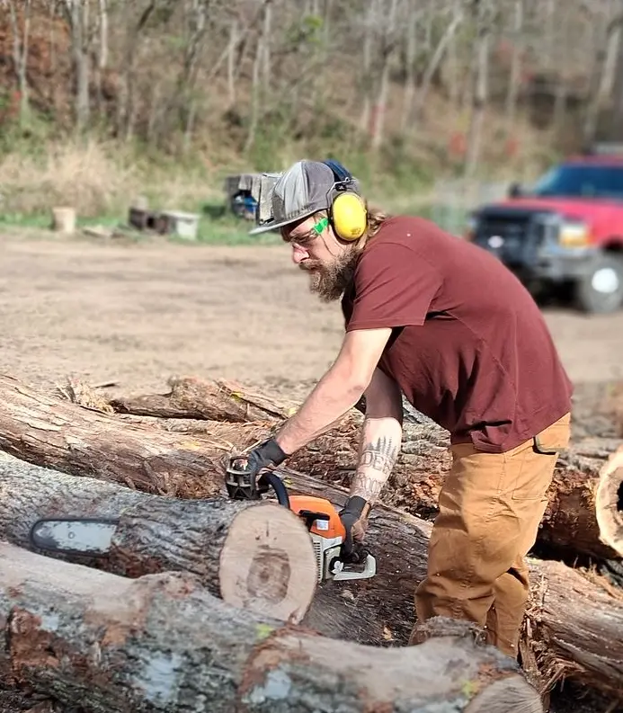 Cris runs operations and keeps the numbers straight. She's the one taking notes while I'm out there eyeballing a load of logs or trying to remember if we ordered more chains. If I'm the chaos, she's the order. Works out pretty well.
